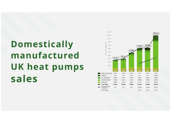 Nel 2024 sono state vendute 98.345 pompe di calore nel Regno Unito, di cui 32.920 prodotte localmente: circa un terzo del totale, con un incremento del 40% rispetto al 2023, secondo i nuovi dati della Heat Pump Association (Hpa). Il risultato riflette il contributo crescente della manifattura britannica alla transizione verso il riscaldamento pulito.