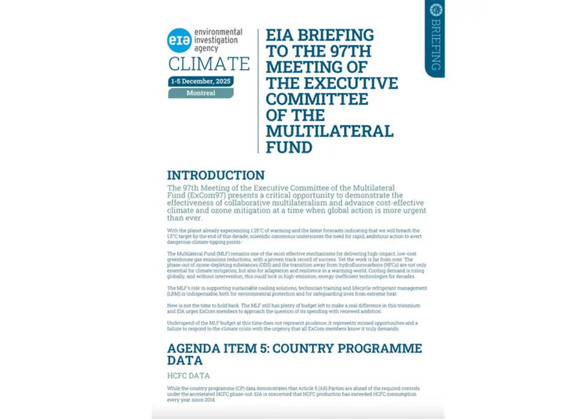 Nel corso della 97esima riunione del Comitato esecutivo del Multilateral Fund (ExCom97), l’Environmental Investigation Agency (Eia) ha lanciato un appello per obiettivi più ambiziosi nel phase-down degli HFC e un’accelerazione nella transizione verso refrigeranti sostenibili, si legge su Refindustry.