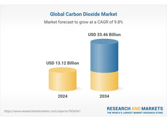 Il report prevede che il mercato globale raggiungerà 33,46 miliardi di dollari entro il 2034, grazie all’innovazione tecnologica e a una diffusione sempre più ampia della CO₂ nei diversi settori industriali.