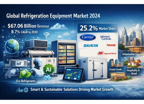 Il mercato globale delle apparecchiature per la refrigerazione ha raggiunto un valore di 67,06 miliardi di dollari nel 2024 ed è destinato a crescere con un tasso di crescita annuo dell’8,7% fino al 2030, secondo un report di Research and Markets, ripreso da Refindustry.