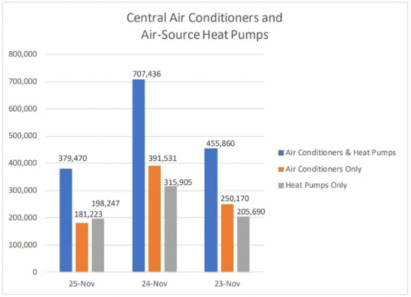 Nel dettaglio, le spedizioni di condizionatori d’aria sono diminuite del 53,7%, scendendo a 181.223 unità dalle 391.531 di novembre 2024. Le pompe di calore aria-aria hanno registrato un calo del 37,2%, attestandosi a 198.247 unità rispetto alle 315.905 dell’anno precedente.