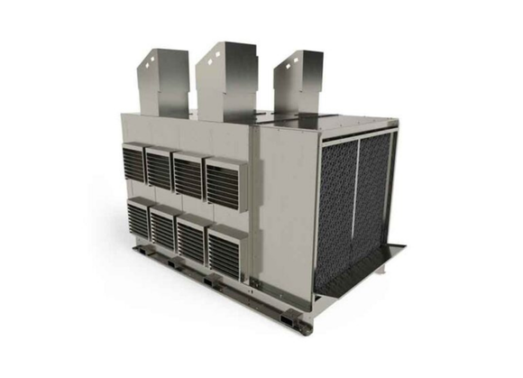 Il Multi-Cycle Core utilizza una serie di stadi di scambio termico per evaporare l’acqua in modo indiretto in un flusso d’aria separato, trasferendo l’energia frigorifera senza aggiungere umidità all’aria di mandata. L’unità è in grado di operare con una pressione statica fino a 820 Pa. L’elevata portata d’aria e la capacità di filtrazione la rendono adatta a installazioni canalizzate complesse e a grandi ambienti industriali. Ad esempio, il CW80 può fornire una portata d’aria fino a 30.600 m3/h a 270 Pa, con un assorbimento elettrico di 14 kW e una capacità di raffrescamento fino a 234 kW, utilizzando esclusivamente acqua come refrigerante.