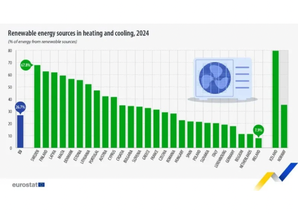 Secondo i dati Eurostat, riportati da Refindustry, la quota di energia rinnovabile utilizzata per il riscaldamento e il raffrescamento nell’Unione Europea ha raggiunto il 26,7% nel 2024, il livello più alto dal 2004 (11,7%). L’incremento rispetto al 2023 è stato di 0,5 punti percentuali, pur rimanendo inferiore alla media di lungo periodo.