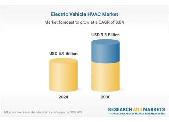 Il mercato globale dei sistemi HVAC per veicoli elettrici (Ev) è destinato a crescere da 5,9 miliardi di dollari nel 2024 a 9,8 miliardi entro il 2030. È quanto emerge da un nuovo report pubblicato da Research And Markets e ripreso da Refindustry. La crescita prevista corrisponde a un tasso annuo composto (Cagr) dell’8,8% nel periodo considerato.