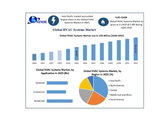 Il mercato globale dei sistemi HVAC ha raggiunto un valore di 169 miliardi di dollari nel 2025 ed è destinato a crescere con un tasso medio annuo del 5,8% fino al 2032, quando toccherà quota 250,77 miliardi di dollari. È quanto emerge dal report ‘HVAC Systems Market – Global Industry Analysis and Forecast (2025-2032)’ di Maximize Market Research, citato da Refindustry.