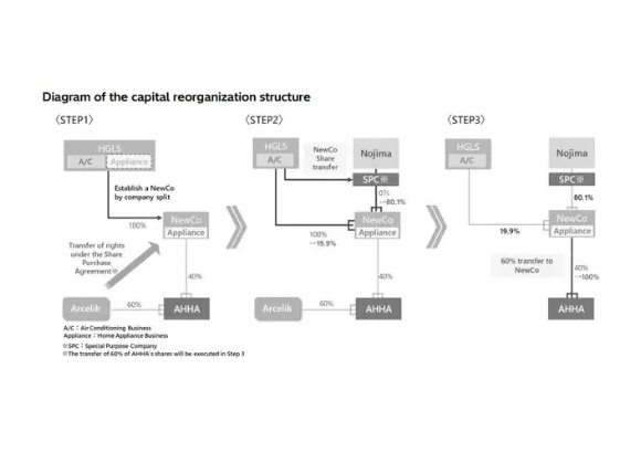 Hitachi GLS ha inoltre firmato un accordo per l’acquisto delle azioni detenute da Arçelik A.S., pari al 60% di Arçelik Hitachi Home Appliances B.V. (AHHA). I diritti e gli obblighi previsti da questo accordo saranno trasferiti alla nuova società attraverso una scissione societaria. Grazie a queste operazioni, le risorse gestionali del business degli elettrodomestici in Giappone e a livello internazionale saranno integrate sotto un’unica struttura.
